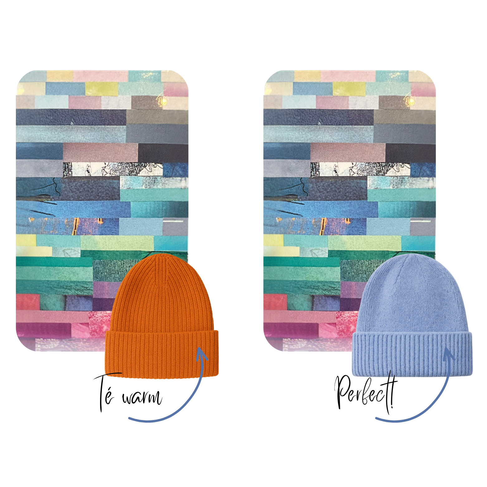 Je legt je kaartje simpelweg naast een kledingstuk en ziet direct of de tint binnen jouw kleurenpalet valt.
